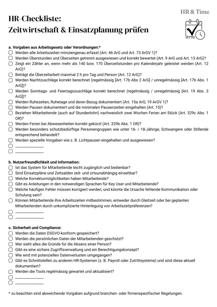 HR-Checkliste: Zeitwirtschaft & Einsatzplanung prüfen